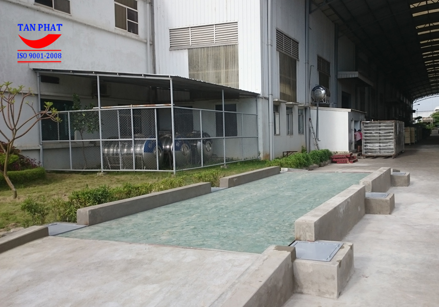 Với kiểu lắp đặt nổi, có khung bao quanh đảm bảo được việc thông thoáng và vẫn có được thẩm mỹ. Cân được lắp đặt bởi 6 con cảm biến lực cho 2 cầu cân dài 10 mét.