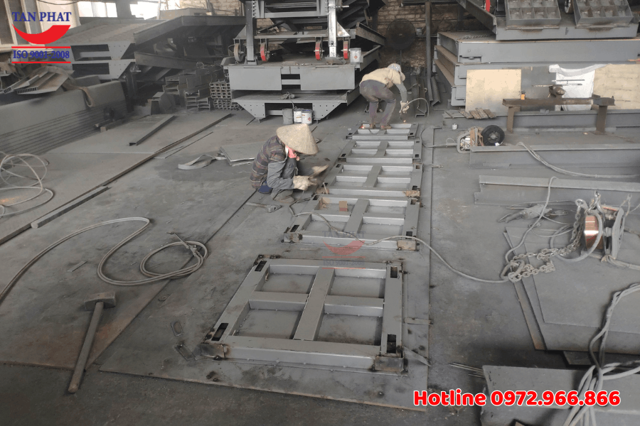 - Mặt sàn cân sử dụng tôn gân/tôn nhám với độ dày từ 4-10mm tăng độ chịu lực của cân