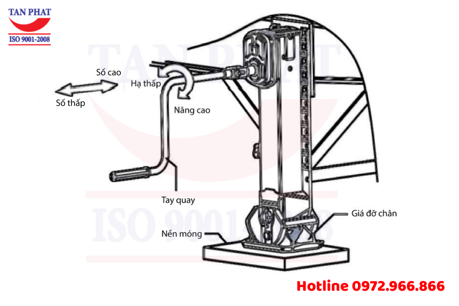 - Tay quay: Sử dụng để vận hành nâng/hạ chân chống
